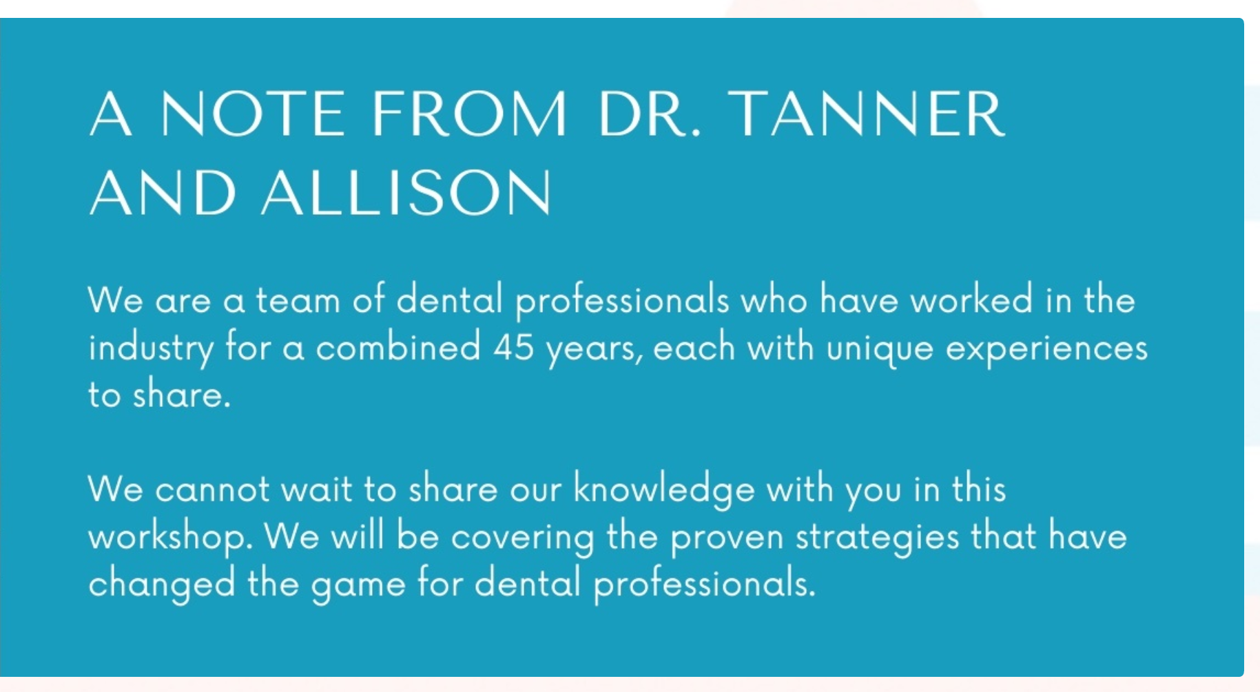 Invest in yourself and your team with a transformational weekend to reinspire, upskill and launch you into the future of dentistry.